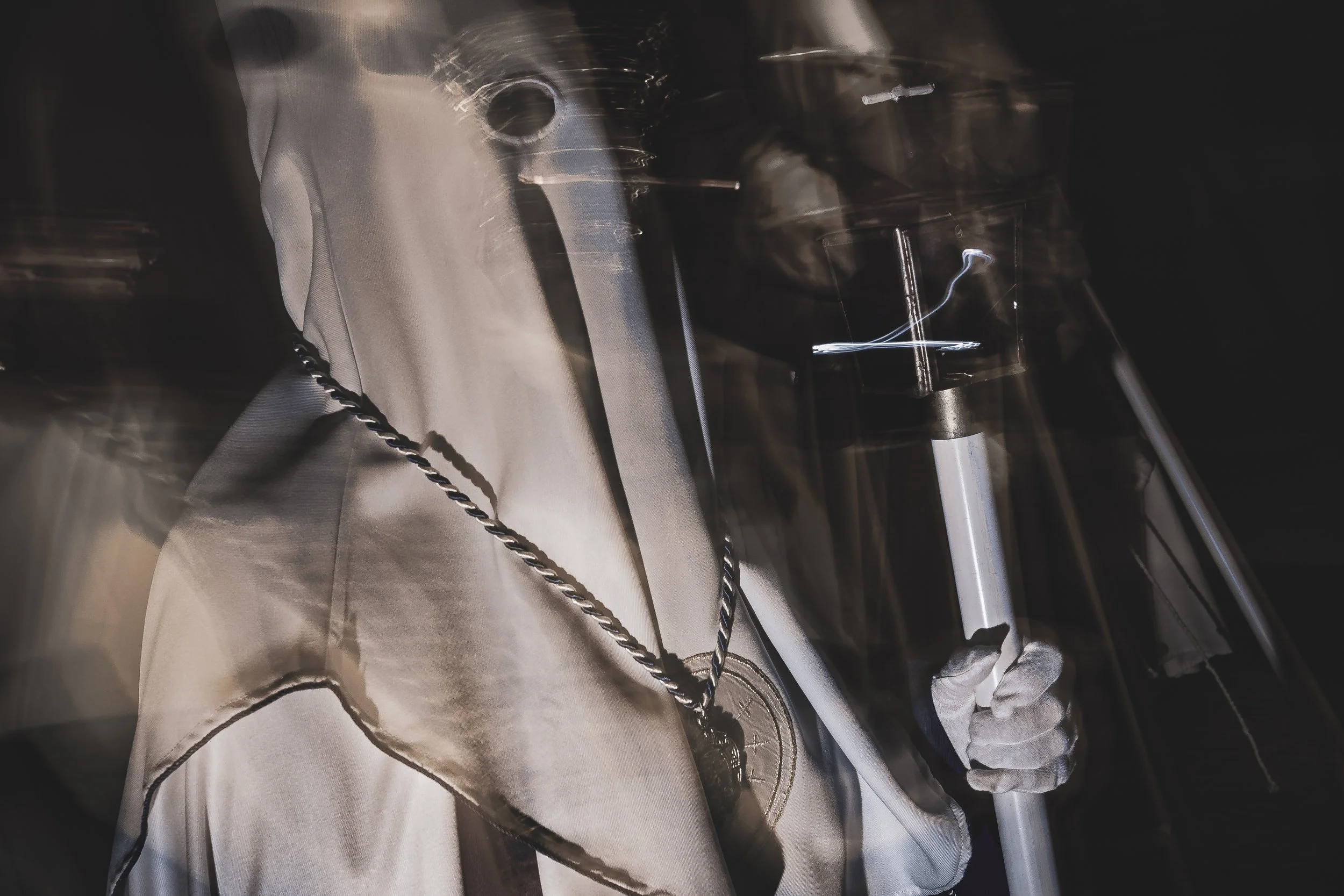 Lejos de la intuición, el proyecto parte de una evidencia: los extremos, al expresarse, se parecen. En su forma de ocupar el espacio público, de vestir el cuerpo, de coreografiar el movimiento, de imponer silencio o gritar consigna, aparece un lenguaje formal común que transciende la diferencia, o al menos la desdibuja. El anonimato [por ocultamiento o por absorción del individuo en el colectivo] se convierte en una forma de fuerza, de pertenencia, de fe.